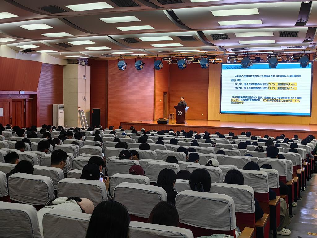 为进一步健全校区心理健康教育防护体系,充分发挥朋辈力量在学生心理健康工作中的作用,10月17日下午,校区邀请学生处心理中心主任刘安庆到校区图书馆报告厅作四级心理防护网骨干人员能力提升专题培训,各系(部)辅导员、学生骨干、心理委员和宿舍管理员等400余人参加培训。