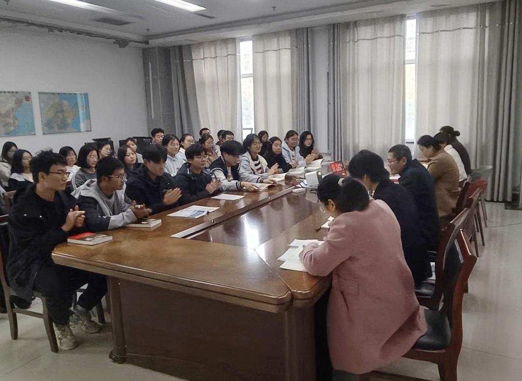 本次读书沙龙设置经典共赏和互动交流两个环节。经典共赏环节中,师生集体学习党的二十届四中全会精神,徐怀友从“国之大者”“书香校园”“家校社协同”三个方面,结合自身学习工作经历分享了感悟,寄语同学们要从红色经典阅读中感悟初心使命、汲取奋进力量,在成长路上坚定信念、勇毅前行。互动交流环节,与会师生围绕青年担当与时代使命,结合自身的学习、生活与思想实际畅谈自己对红色精神、时代使命与青年责任的理解。大家纷纷表示,将以红色精神为指引,把个人理想融入国家发展和民族复兴的伟大征程,在学习中锤炼过硬本领,在实践中勇担时代责任。