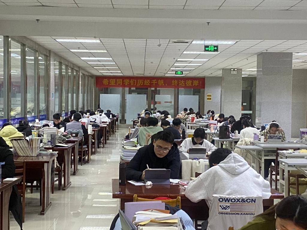 为给备考学子创造一个安静、舒适、便利的学习环境,自11月1日起,图书馆以“研路起航·相伴同行”为主题开展考研系列服务活动,通过“考研心声”“研途有你”“研战冲刺能量补充”“书香传递”等暖心环节,为考研学子奋斗旅程注入温情与力量。