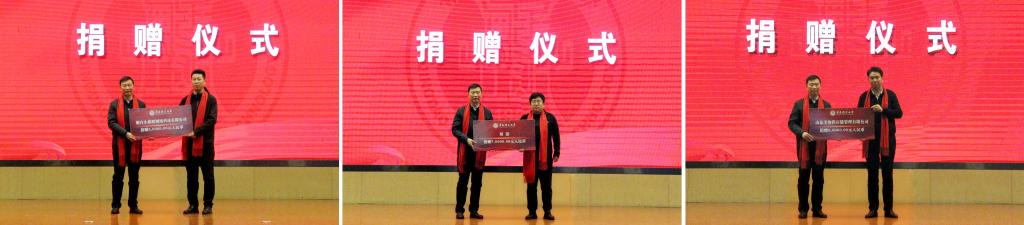 工程管理专业12级校友曹福帅、工程监理专业07级校友刘滨、土木工程专业09级校友杨文元向临沂校区捐赠,校区管理办公室主任杜方代表校区接受捐赠。