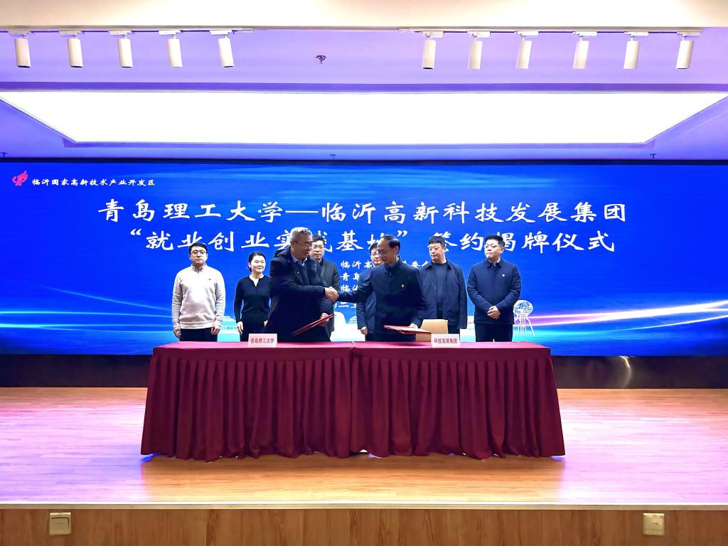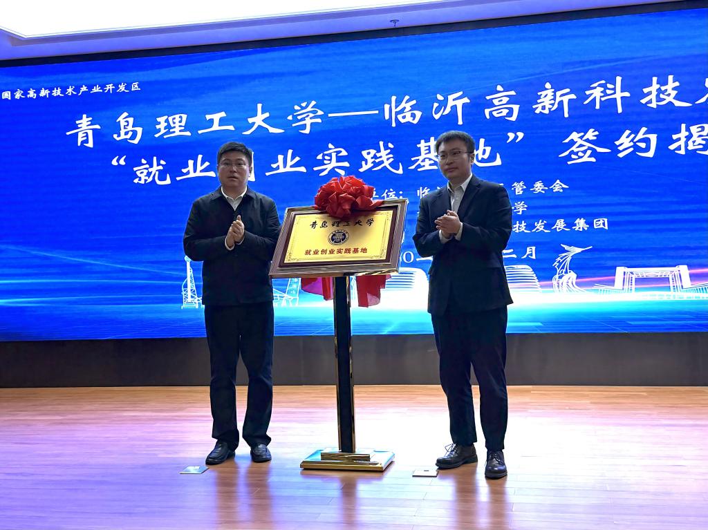 随后,校区与临沂高新科技发展集团正式签署就业创业实践基地合作意向书,并为基地揭牌。