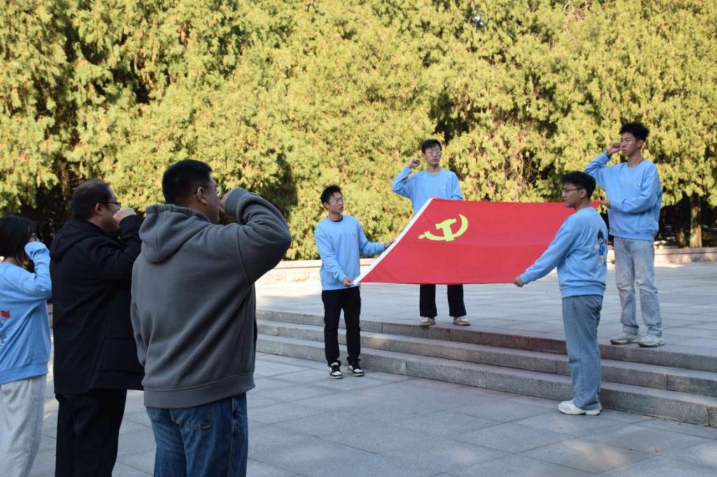 在庄严肃穆的革命烈士墓区,师生党员整齐肃立于纪念碑前,向长眠于此的革命先烈深深鞠躬,表达崇高敬意与无尽哀思。随后,全体党员面向鲜红党旗,高举右拳,庄严重温入党誓词,铿锵有力的誓言回荡在苍松翠柏之间,与历史回声交织,进一步坚定了大家坚守初心、勇担使命的信念。