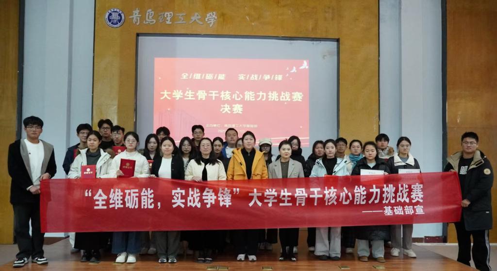 12月17日,由基础部主办的“全维砺能,实战争锋”大学生骨干核心能力挑战赛在大学生创业孵化基地报告厅举行。学生工作部副主任陈玉静,基础部学生党支部书记、辅导员田庆爱,基础部辅导员闫素娟等师生代表担任大赛评委,基础部全体学生干部观摩了此次比赛。