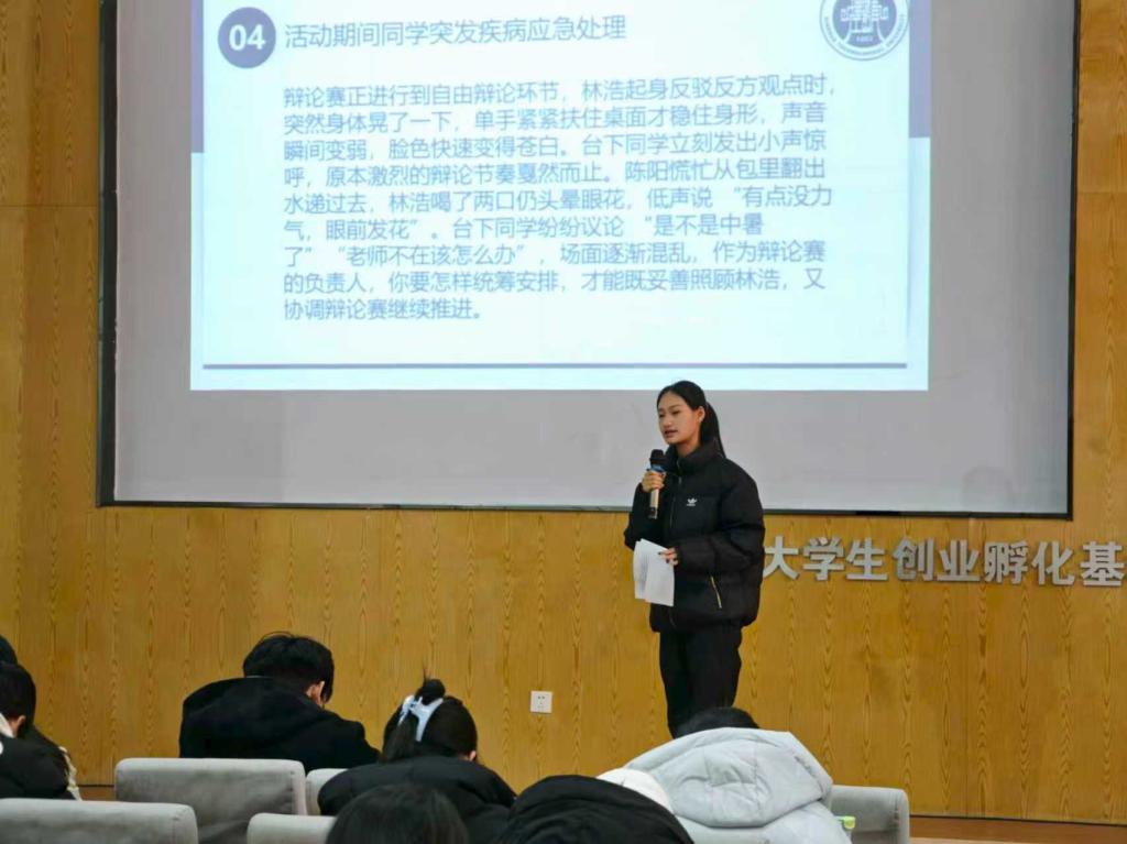 本次大赛吸引校区90余名选手踊跃参与。参赛选手在完成系统技能培训后,历经初赛理论笔试、复赛办公实操,最终10名选手脱颖而出,成功晋级决赛。决赛设置个人工作汇报与情景再现分析两大核心环节,全面考察选手的工作实绩、问题处置能力及临场应变素养。在个人工作汇报环节,选手们以详实的数据、鲜活的案例分享履职经验,充分展现出扎实的工作能力;情景再现分析环节聚焦宿舍矛盾调解、活动突发情况应急处置、学风建设等校园工作真实场景,选手们迅速研判问题、精准提出解决方案,精彩的现场演绎赢得台下阵阵掌声。经过激烈角逐,统计241刘晨曦、周函冰获一等奖;商英241曹艺缤、国本251王泽萍、统计243王成功获二等奖;商英242田晓阳、统计241蒋依然、赵韵涵、商英243刘昕明、统计244刘振洋获三等奖。