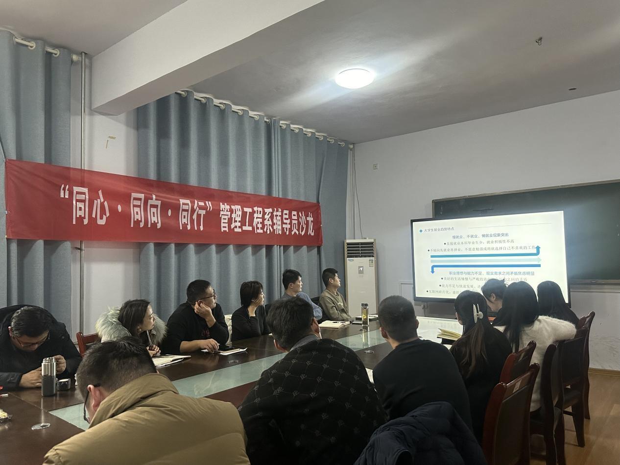 12月22日,管理工程系在2号楼会议室举办“同心·同向·同行”辅导员沙龙活动。活动由管理工程系党委副书记、副主任何晓晴主持,系团总支书记陈凡及全体辅导员参加。
