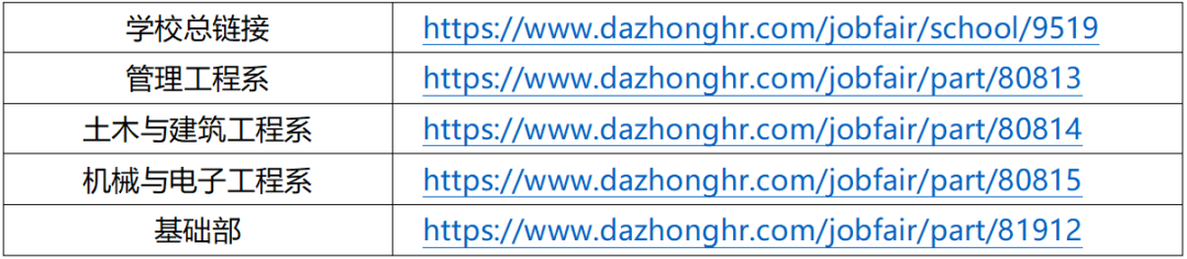 为实现求职招聘的精准对接,本次招聘会根据学校院系专业分别安排独立专场,方便毕业生根据所学专业、所在学院和求职意向精准对接筛选,请各用人单位根据岗位需求报名相关专业专场。