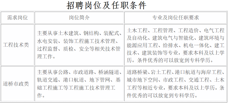 土木工程、道路桥梁与渡河工程、城市地下空间工程、港口航道与口岸工程、市政工程、交通工程、岩土工程、工程管理、工程造价、电气工程及其自动化、建筑电气与智能化、给水排水工程、建筑环境与能源应用工程等工程类相关专业。